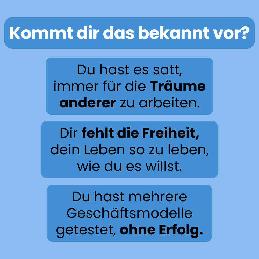 Stell dir vor, du kannst deiner Leidenschaft nachgehen, mehr Zeit mit deiner Familie und Freunden verbringen und hast die volle Kontrolle über deine Zeit und Entscheidungen!